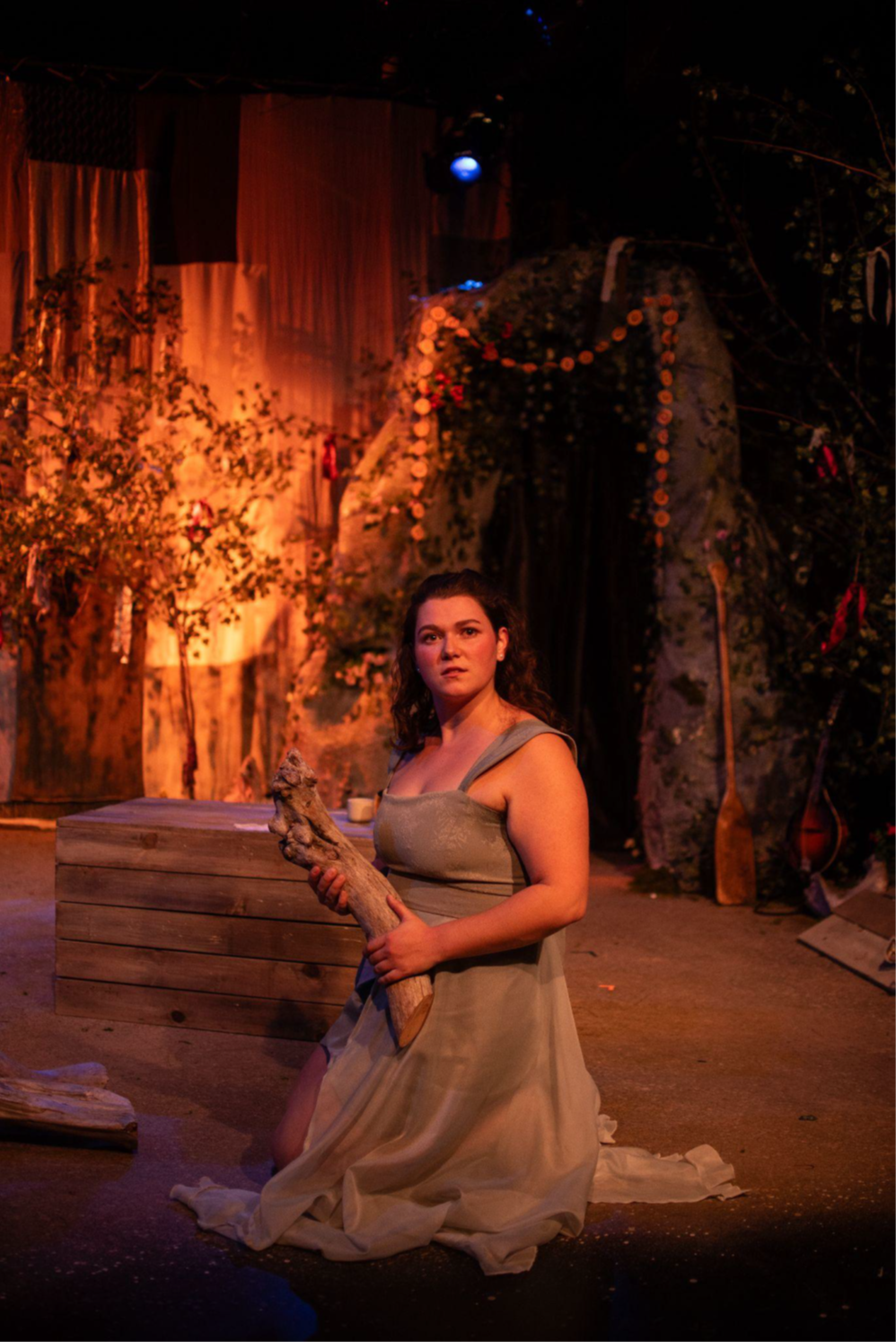 Even without consistent companionship, Calypso has created a life for herself on her island. She has her homey cave. Her provisions. And most importantly, she has her music. Always singing and writing songs, Hermes has recently gifted Calypso a new musical instrument to compose her songs on. Wohlbier sings original songs for the production in a full and rounded voice that sounds like it was meant to be accompanied by a lyre. We feel her desire for life off the island, but also feel what we’re sure is a regular resignation every time Hermes gently reminds her she can’t leave.